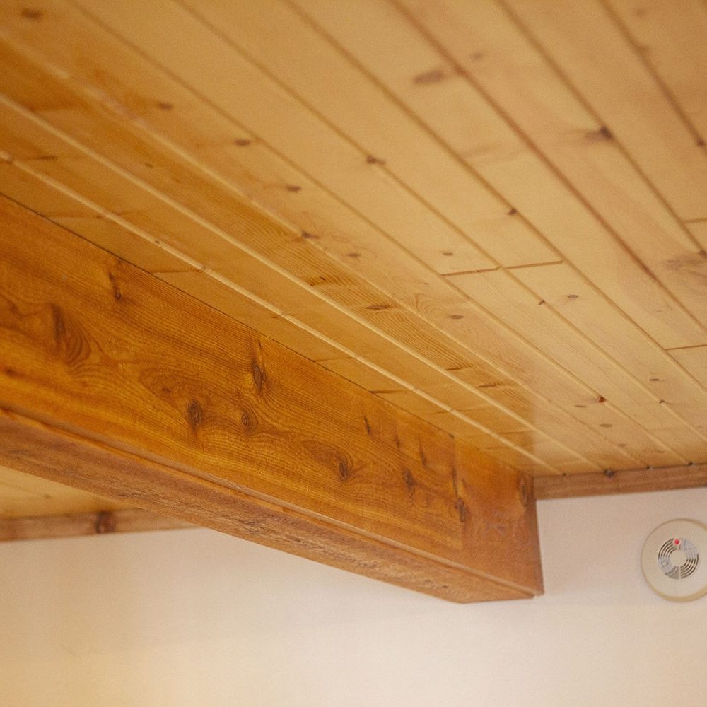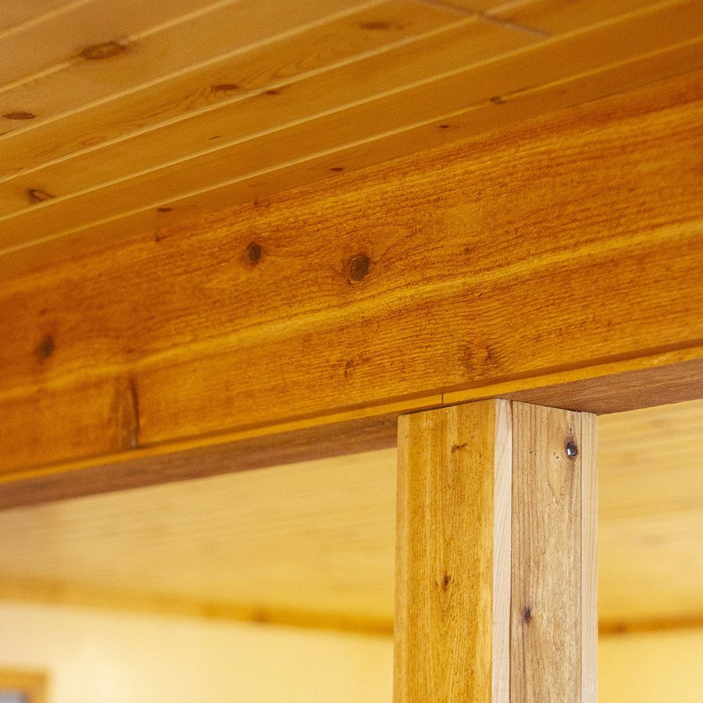 This is one of our favorite projects! We used a pine tongue and groove board to go over and old outdated ceiling. This helped cover up cracking and gave the basement of this cottage a warm glow. We also wrapped all the beams and pillars in cedar. This is a great way to give your living space a new look, without the cost and mess of demolishing the existing.