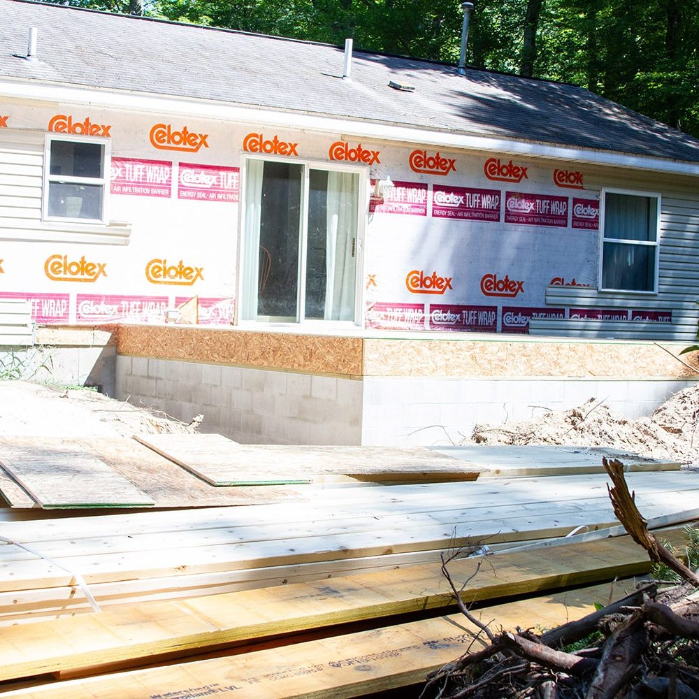 Here we did a 16 x 16 addition on a house complete with a vaulted ceiling, windows and doors, a whole new roof, and a fireplace. This job we helped the homeowners, who were handy around the house, keep the project in budget by finishing up to the drywall, and letting the owners finish the rest. This is another way we try to help our clients get the best possible product.